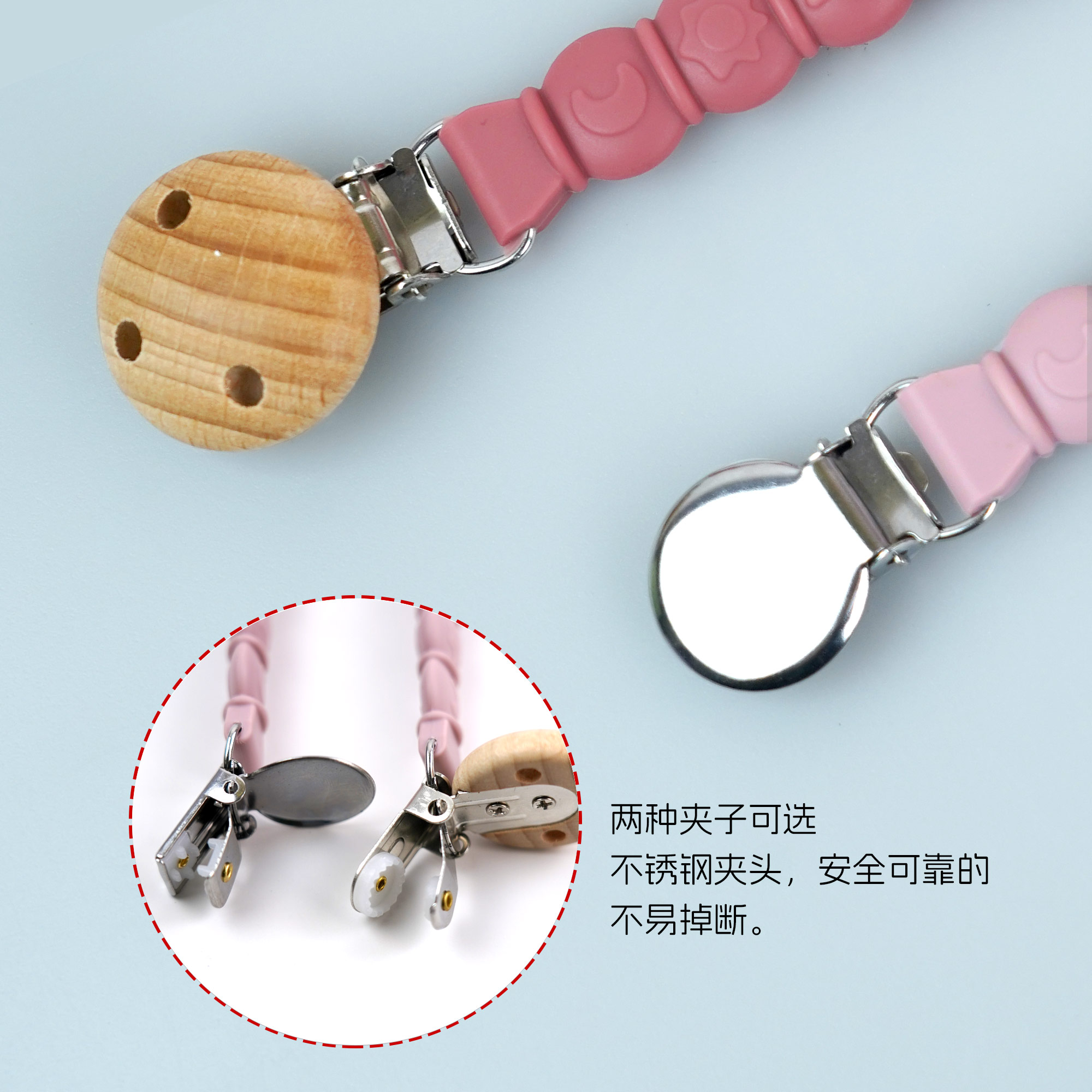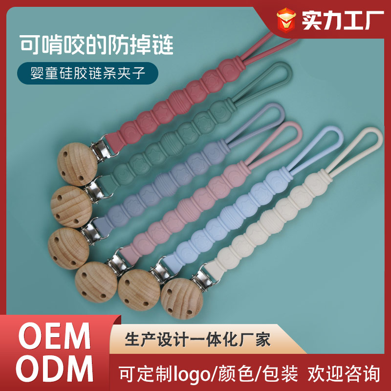 防掉鏈硅膠奶嘴鏈 嬰兒食品級(jí)可水煮防掉鏈牙膠
